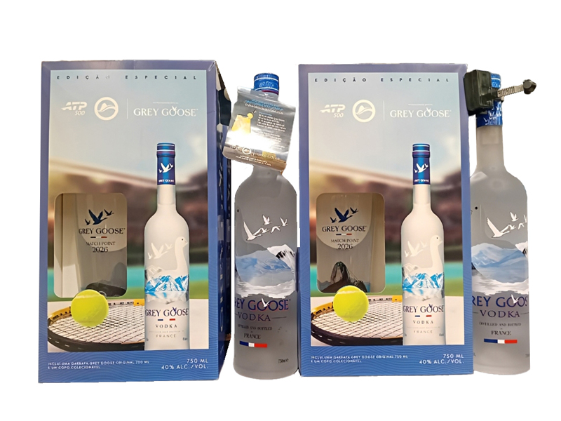 O pack Grey Goose Match Point foi desenhado para oferecer a experiência completa do drink assinatura do evento. O kit é composto por uma garrafa de vodka Grey Goose (750ml) e um copo colecionável do evento. As unidades estarão disponíveis nas principais redes varejistas do país, como Pão de Açúcar, Carrefour, Sam’s Club, Supermercados Mundial, Supermercados Zona Sul, e Shopping Up Town, com foco em atender o público de ambas as capitais que buscam exclusividade e a conexão com o universo do tênis.