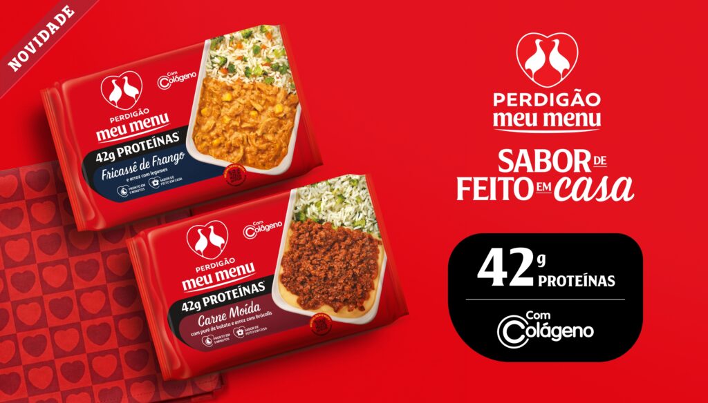 A Perdigão, marca de alimentos mais escolhida pelos lares no Brasil¹, por meio de sua submarca Perdigão Meu Menu, apresenta duas novas opções de refeições completas, dispondo de 42g de proteína por porção e incremento de colágeno. Com o sabor de feito em casa, credencial da linha que não apresenta adição de conservantes, o lançamento contempla as composições: Carne moída com purê de batata e arroz com brócolis e Fricassê de frango e arroz com legumes, opções que acompanham os novos hábitos alimentares dos brasileiros, em busca por refeições práticas, balanceadas e que reforçam o consumo diário atrelado a orientação de especialistas alimentares.