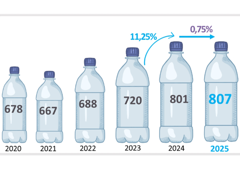 Historicamente, o uso doméstico de resina PET virgem cresceu 216% desde 2000, quando o País consumiu 255 mil toneladas do produto. Pesam a favor desse desempenho as características do material, que são valorizadas pelos consumidores e pelas empresas usuárias da embalagem: a transparência, que mostra a qualidade dos produtos envasados; a leveza, que agrega eficiência no transporte; a alta resistência, que amplia a possibilidade de usos/aplicações; produtividade e preços competitivos, que permitem o uso em grande escala e abrem mercado. De acordo com informações do varejo, a embalagem PET fechou 2025 com uma participação hegemônica nos segmentos de água mineral e óleo comestível, cujo posicionamento é superior a 95% do mercado. No caso dos refrigerantes, com diversidade maior de opções de embalagem, a presença do PET é superior a 70%.